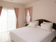 の夢をかたちにしました。ピーチツリー製のドアは華美な演出をすることもなく、当時の"様式"をそのままに表現しています。玄関に向かう階段は落ち着いた雰囲気の300角タイルを使用、レンガ調タイルの外壁と共に重厚感をじゅうぶんに漂わせる造りです。物置として使われているログハウス風の小屋と木のテーブル、オーナー様のちょっとした気遣いがこんな所にも表れています。 |