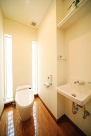 この物件を施工するにあたり、最も拘ったのは「安全・安心」です。喘息やアレルギーの専門医であるお施主様は一家の大黒柱として、自分自身の健康はもちろん、家族が安心して住めるような家を建てたいとの強い要望がありました。安心感には様々な要素がありますが、私達がご提案させていただいたのは、「免震住宅」「高気密・高断熱」「オール電化」「竹フローリング」であります。「免震住宅」は地震による揺れを約1/10まで低減できる上、電力が不要であるため、災害時においても安心です。「高気密・高断熱」に関しても、アスベストは一切含まない、デミラック製の発泡ウレタンを使用。工事後のホルムアルデヒドもほとんど認められず。水蒸気を制御して内部結露を防ぐため、腐食なもちろん、カビやダニからも木材を守る、理想の断熱材です。そこに「オール電化」と「24時間全館セントラル空調」を併せることで、常にお部屋の中をクリーンに保つ事が可能です。厳選素材だけを使用した「竹フローリング」もまたシックハウス対策にも最適です。お引き渡し時に「開放的な空間やデザインにおいて期待以上の家が出来ました。しかしなにより、目に見えない安心感を手に入れた。そのことに本当に満足しています。」との言葉に私達も本当に満足いたしました。 |